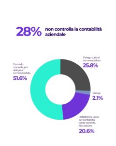 Le aree in cui PMI e partite IVA mostrano carenze importanti, del resto, riguardano aspetti vitali per la tenuta dell’impresa: più di 1 su 5 non conosce la propria situazione di cassa attuale e rischia crisi di liquidità. Quasi un terzo degli imprenditori italiani usa un solo conto corrente per gestire denaro aziendale e privato e il 28% non controlla la contabilità aziendale.